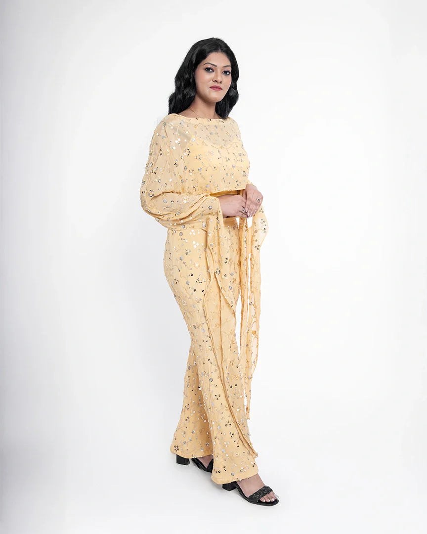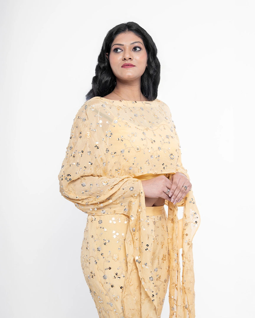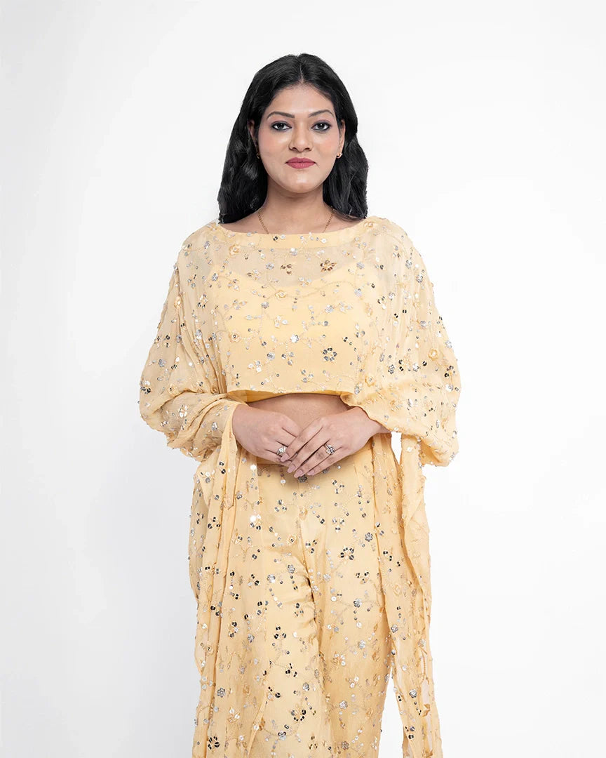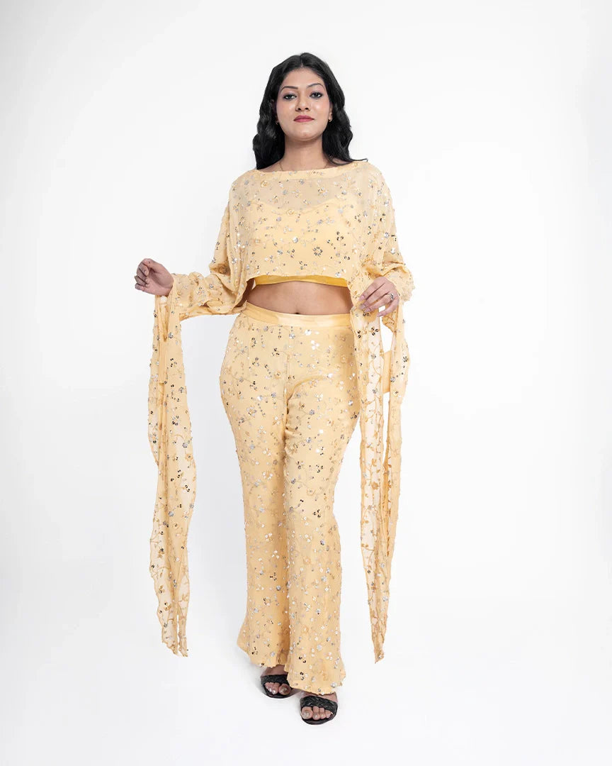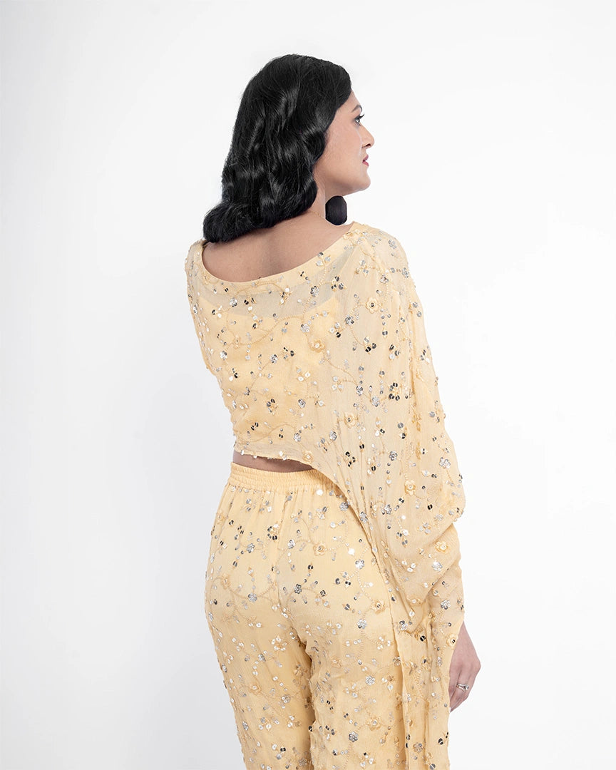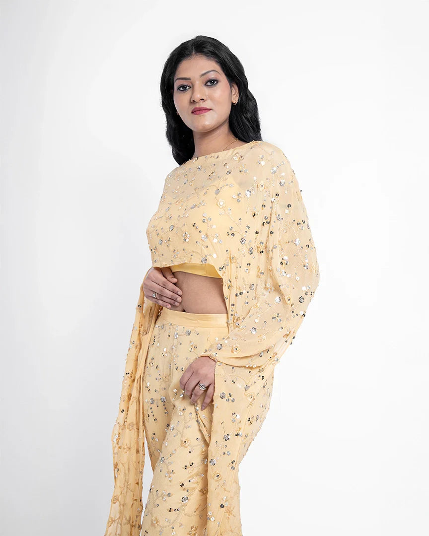 Bright, delicate, and festive — this co-ord is pure sunshine wrapped in elegance.