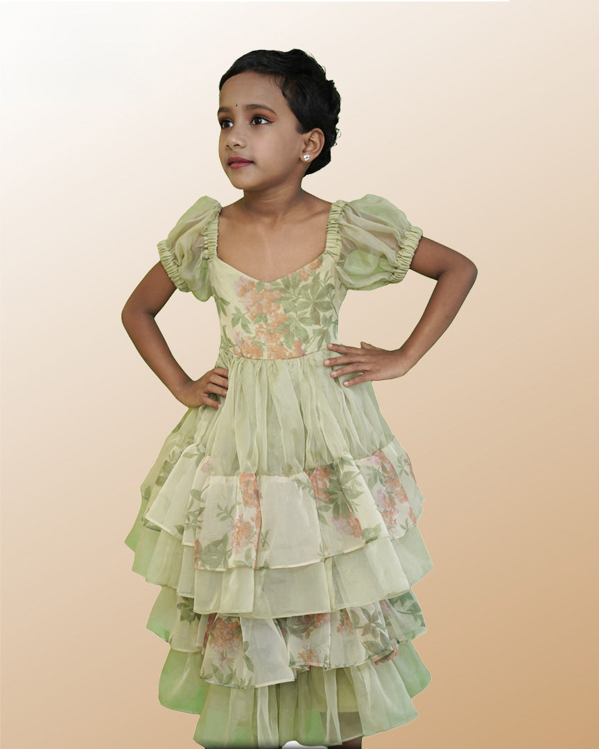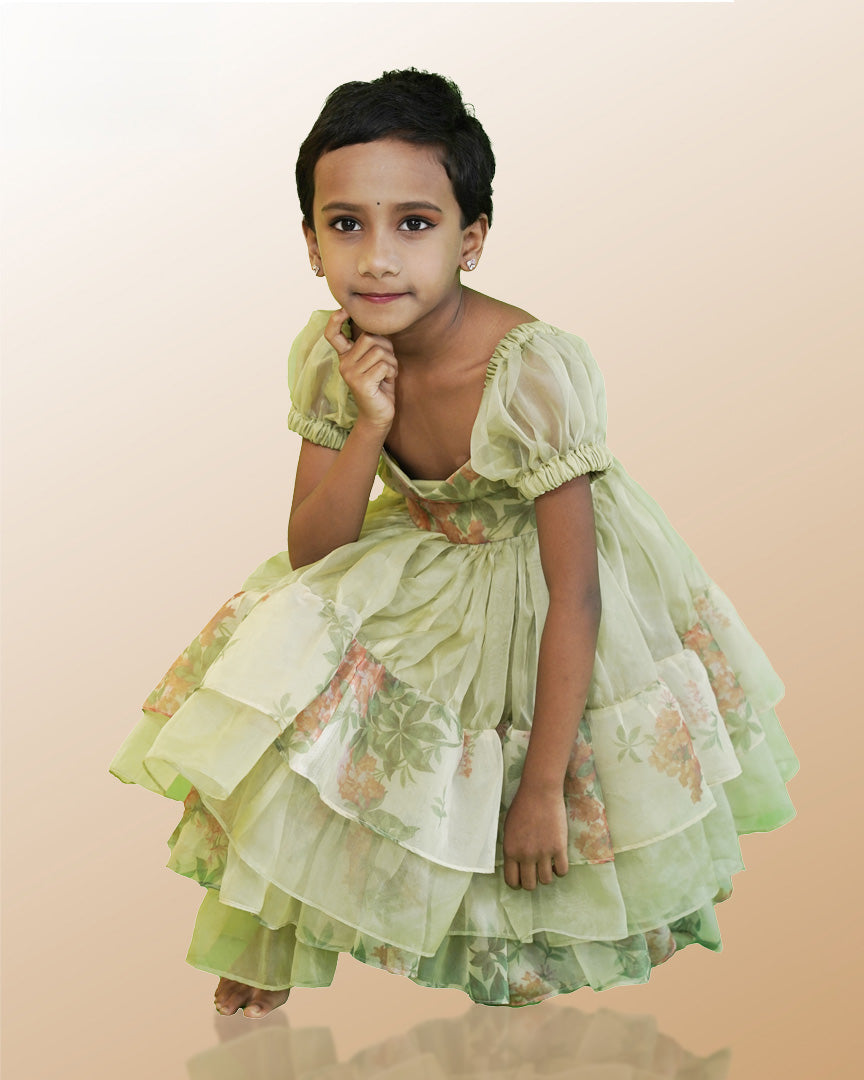 Soft, playful, and picture-perfect, this pastel shade frock in dreamy organza layers is made for little fashion stars. A perfect pick for birthdays, celebrations, or any party where your little one wants to shine.