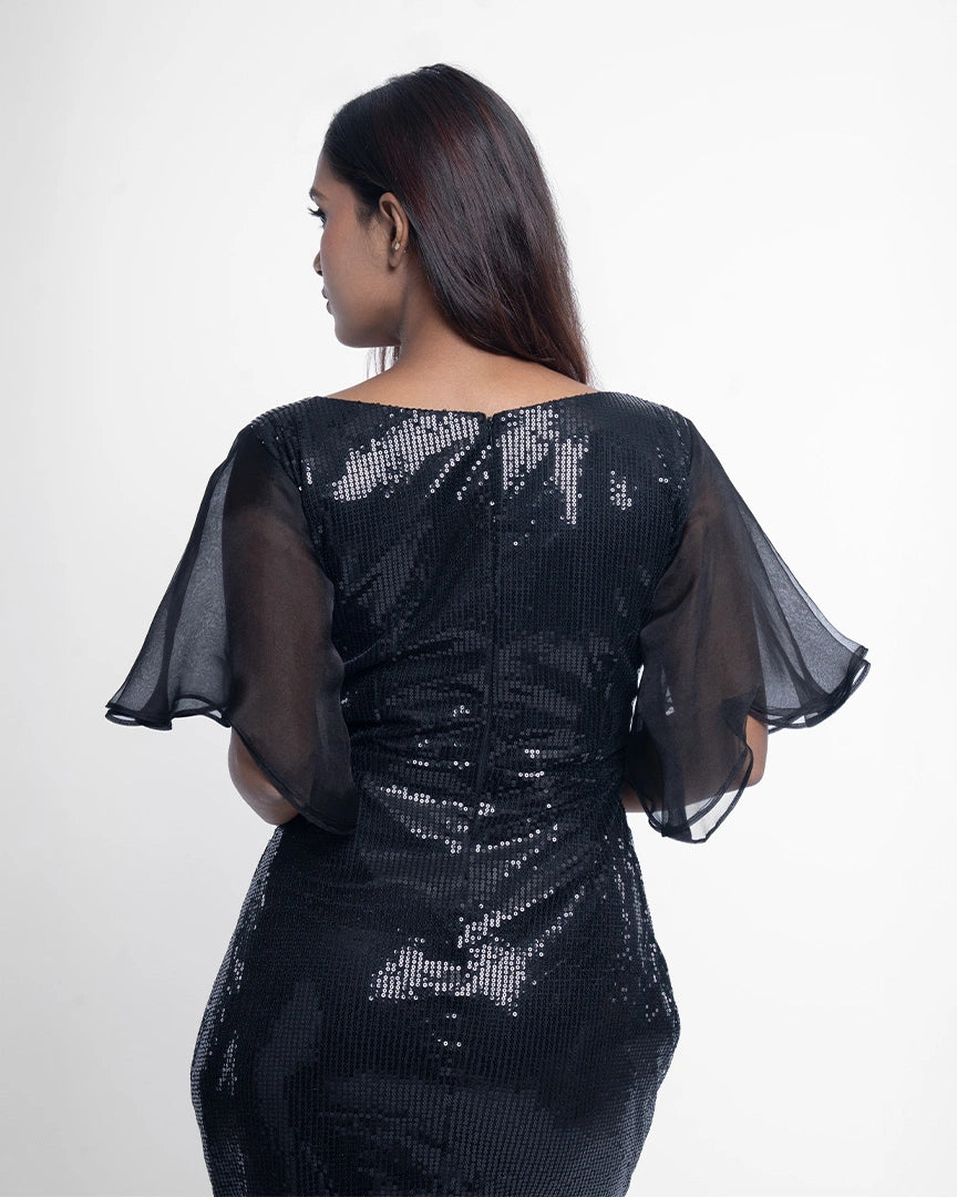 Own the night with glittering glamour in this stunning black bodycon dress, adorned with sequins for that perfect mix of edge and elegance.