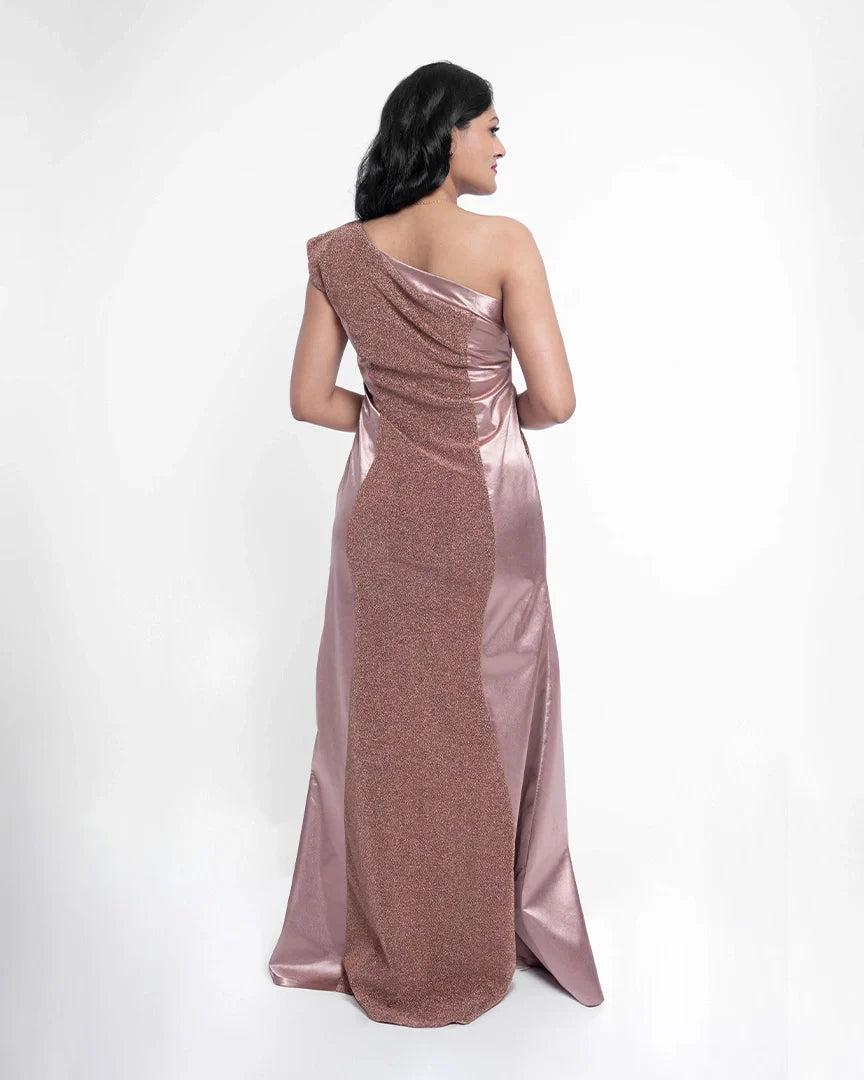 Shine bright and party hard in this dazzling asymmetric shimmer bodycon — designed to make you the center of attention at any celebration.