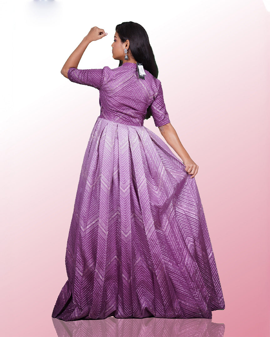 Simple yet stunning, this multicolour gown is a celebration of flow, color, and charm. With its elegant fall and vibrant tones, it's the perfect outfit for a refined party appearance.