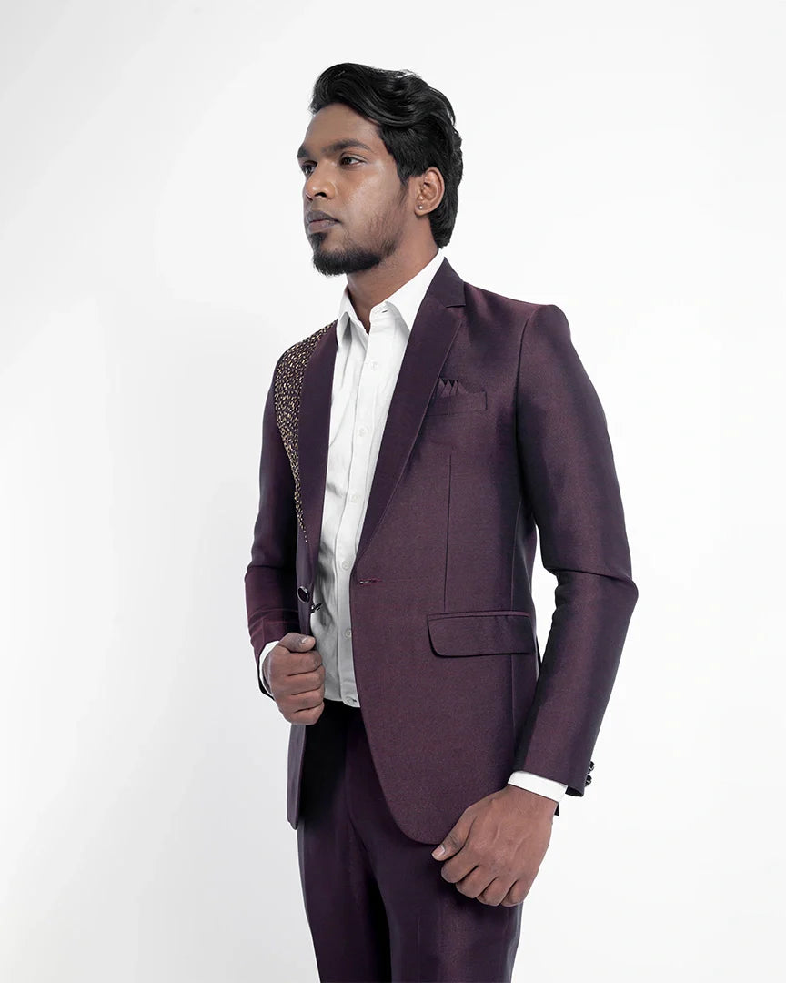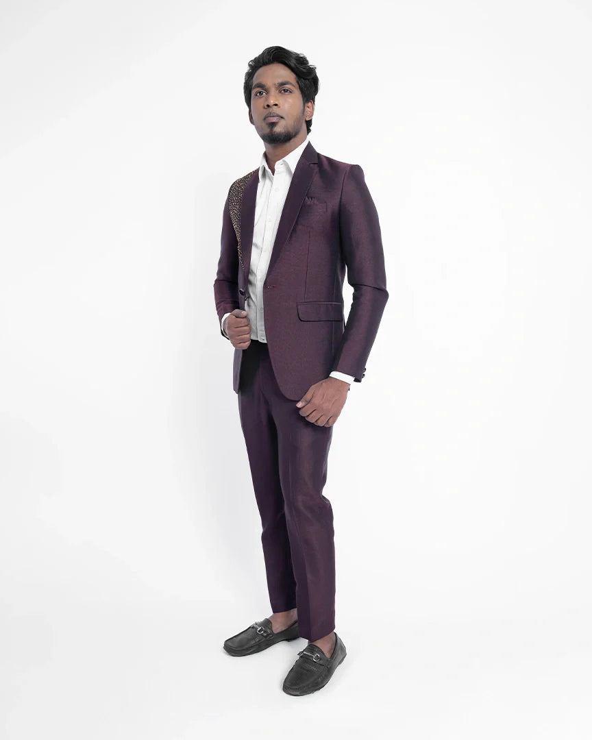 A powerful twist on formalwear — this suit combines rich tones and fine detailing to make your presence unforgettable.