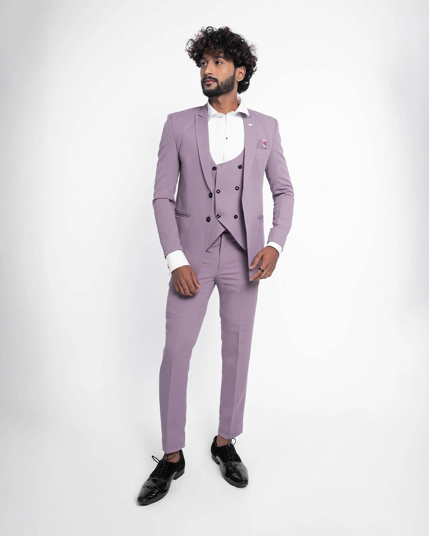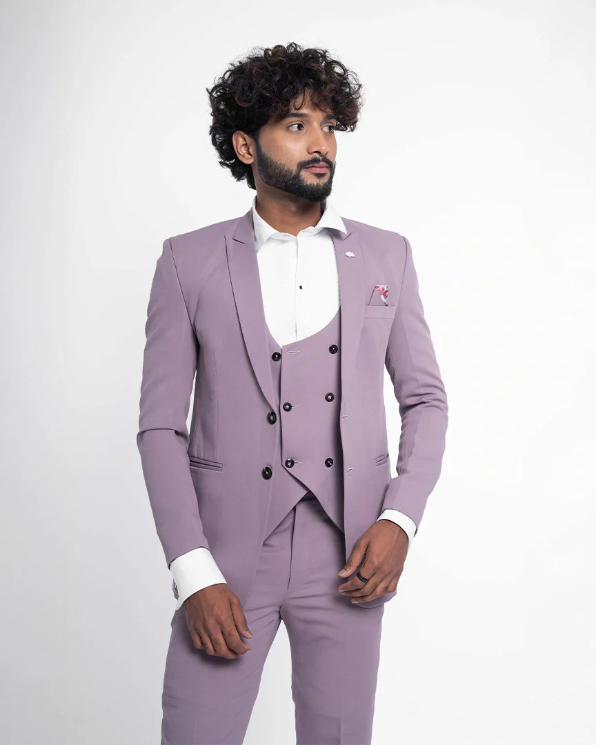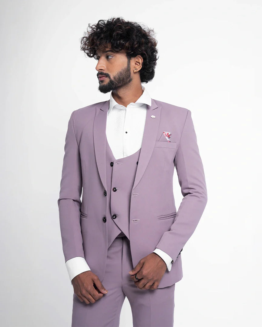 Classy and redefined, this lilac blazer suit with a matching vest adds fresh elegance to your formalwear. A soft hue, styled for powerful impressions.