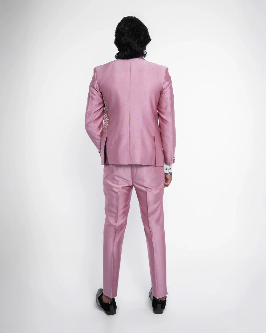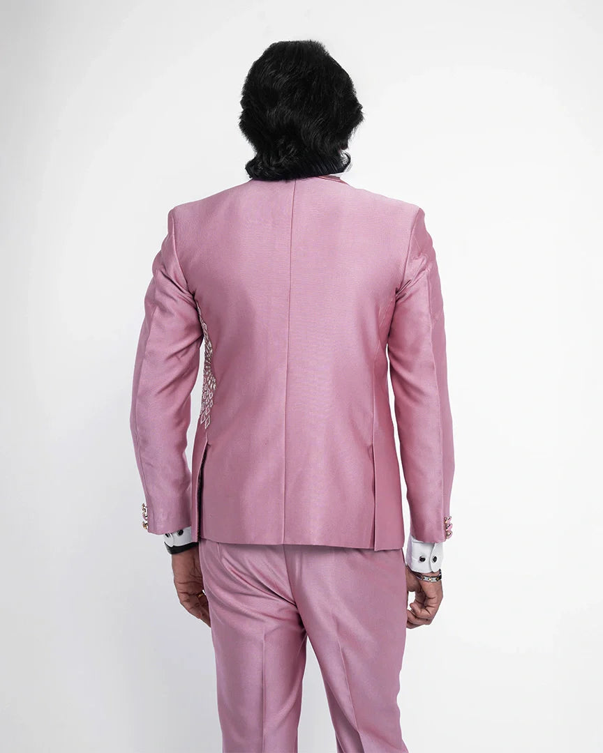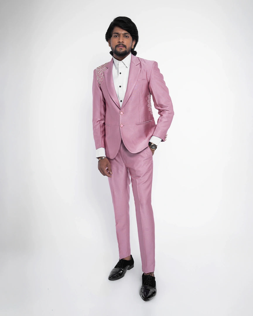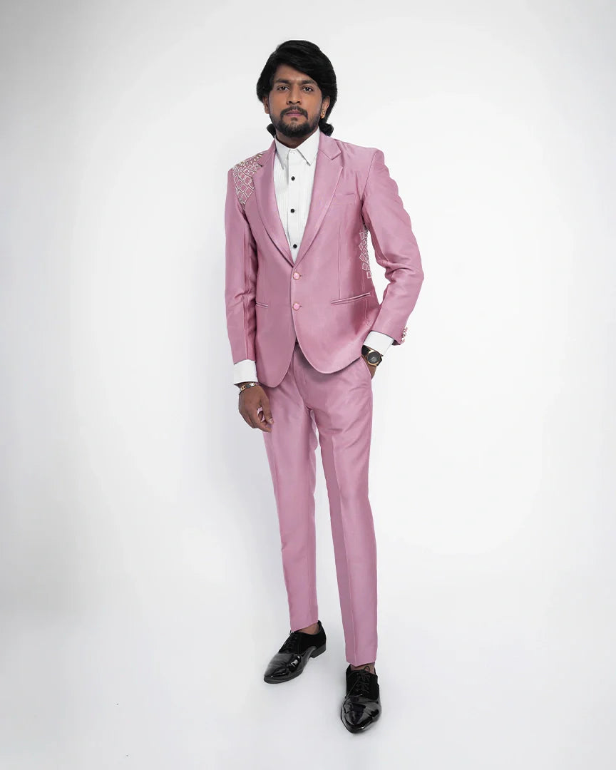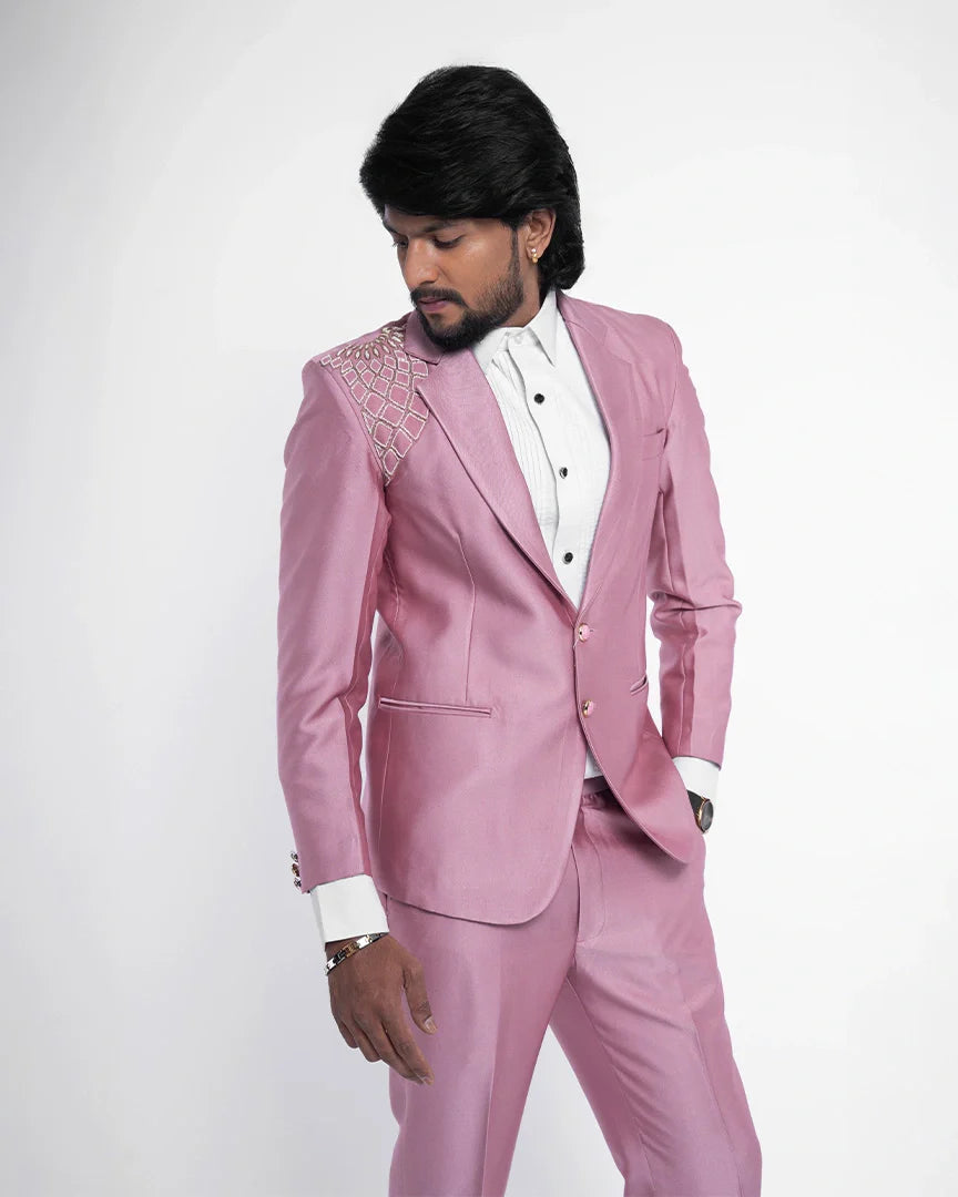 Glamorous elegance radiates from this soft pink ensemble, adorned with intricate aari embroidery for a refined and festive charm.
