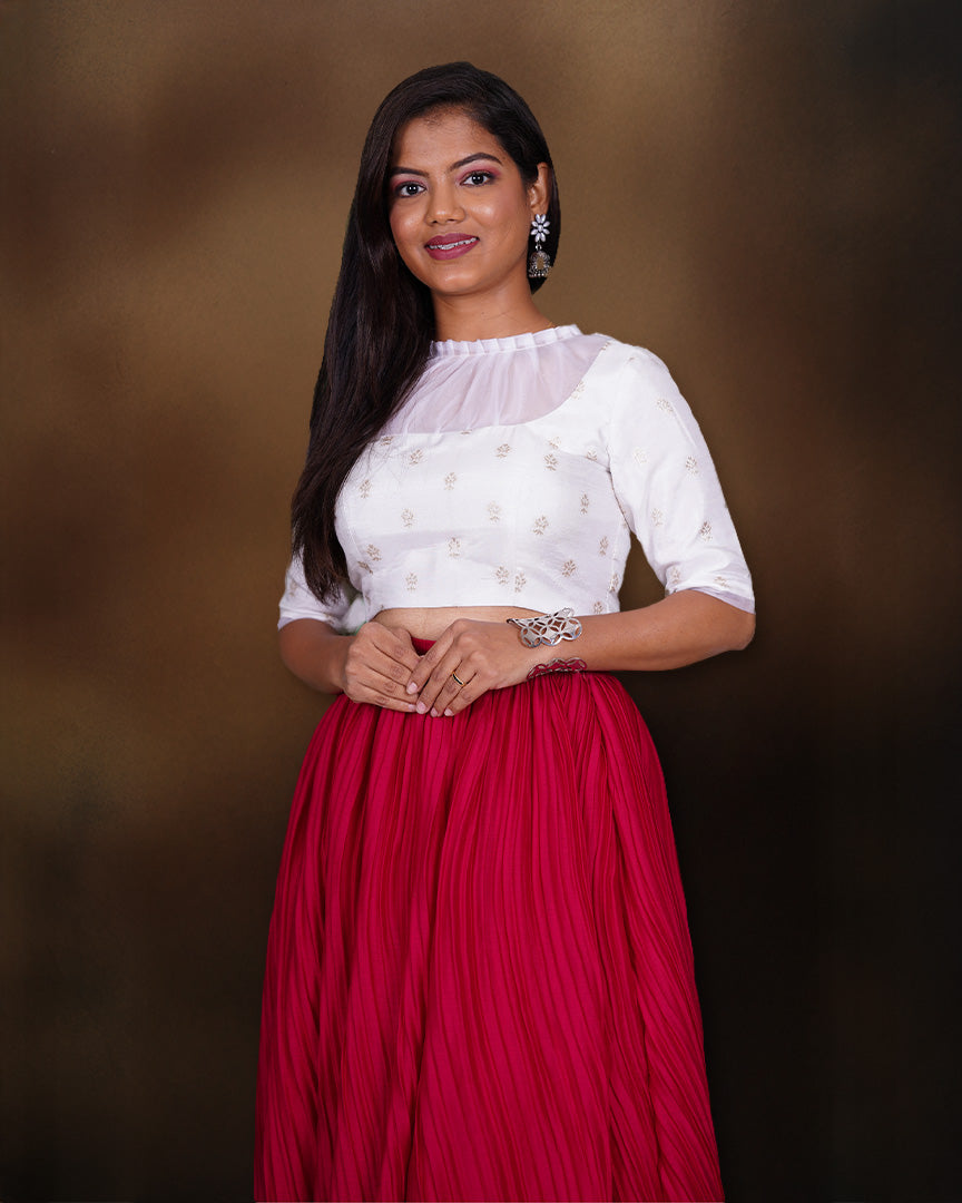 Step out in style with this chic western outfit featuring a stunning contrast of pink and half white. The playful blend of shades makes it visually striking, perfect for grabbing attention while staying classy.