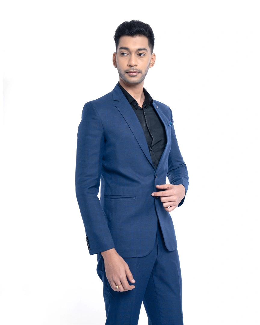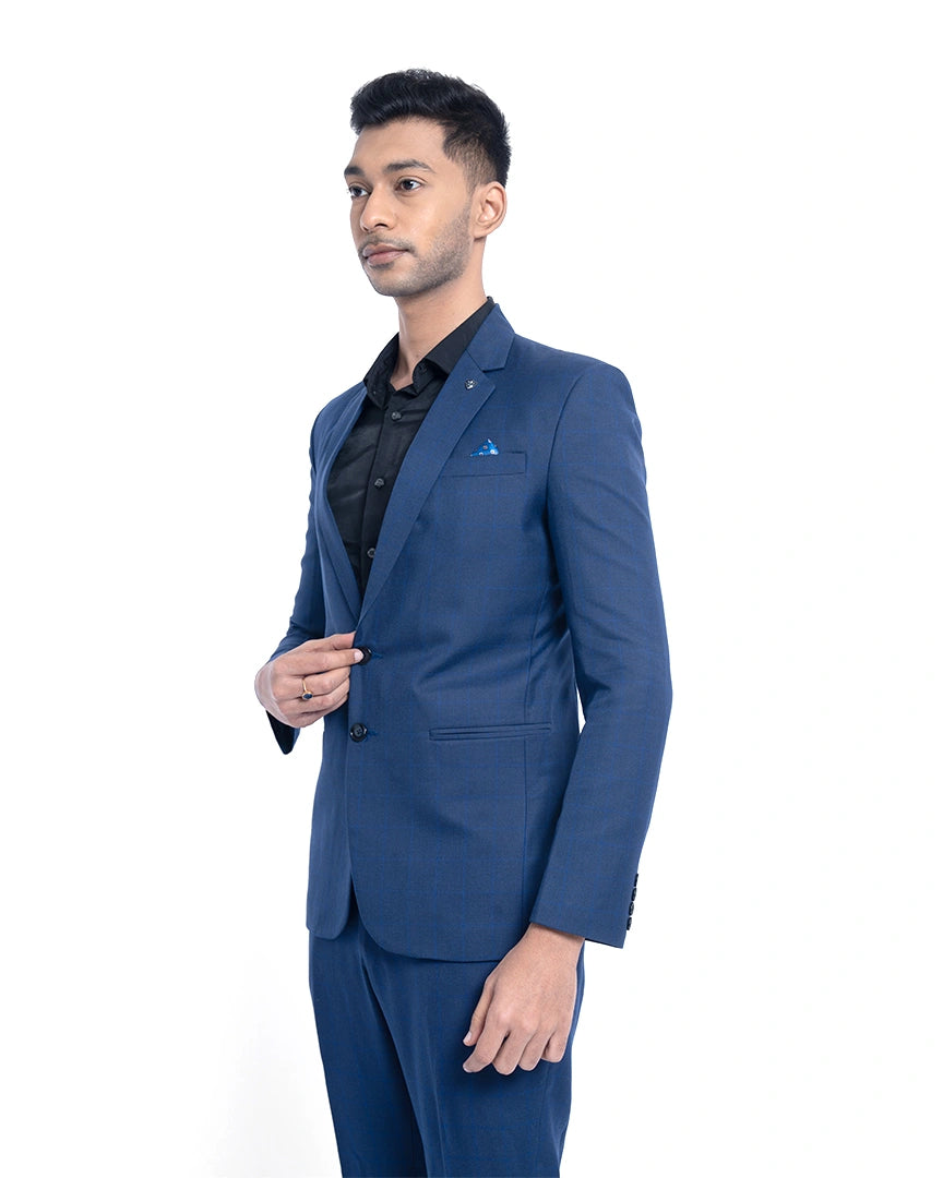 Dapper style takes center stage in this dark blue suit, enhanced with subtle patterns that add just the right amount of detail for a sharp, modern look.
