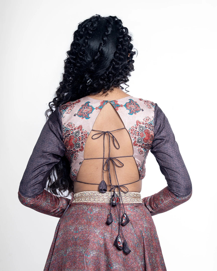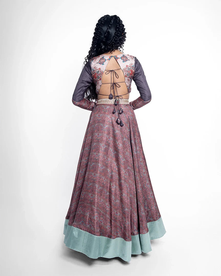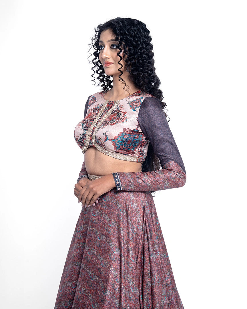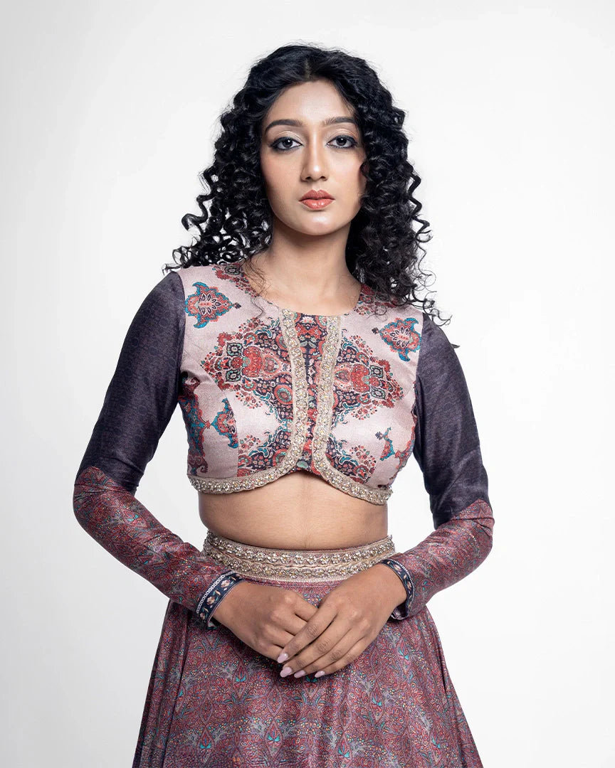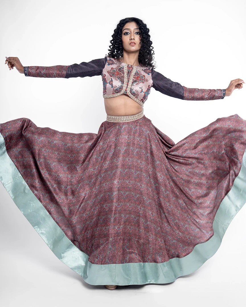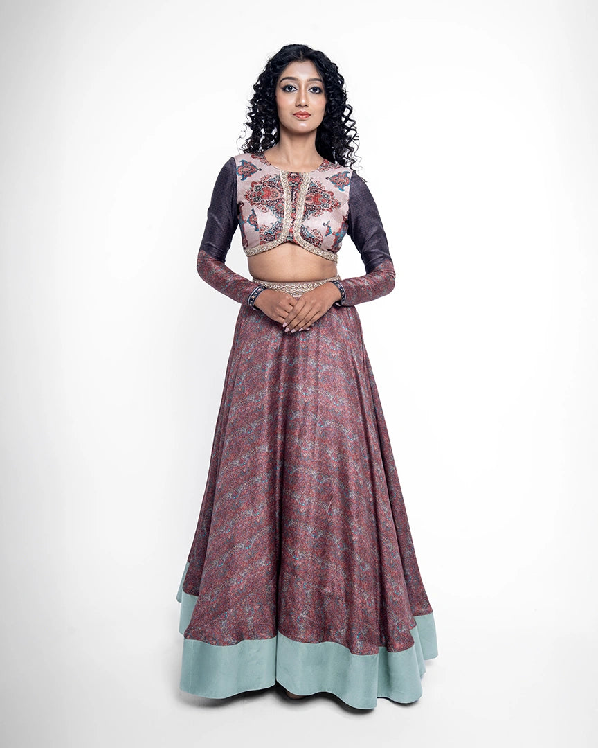 Unique elegance flows through this ensemble, showcasing intricate prints that reflect both tradition and trend in one graceful piece.
