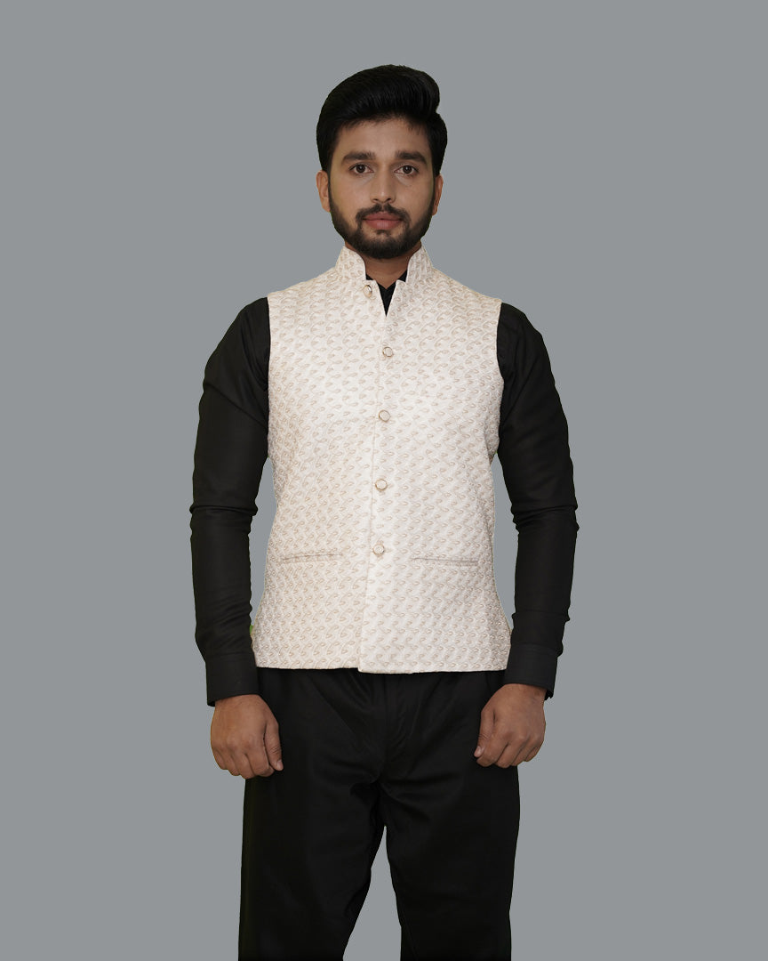 Elegant, detailed, and modern — this embossed waistcoat adds a rich layer of sophistication to any formal outfit.