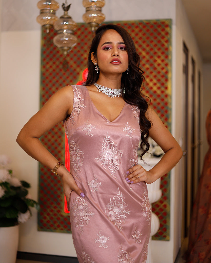 Turn heads with this elegant mermaid-cut western dress in a graceful peach shade. Designed to enhance your natural curves and offer a refined silhouette, it's perfect for cocktail nights, celebrations, and special events.